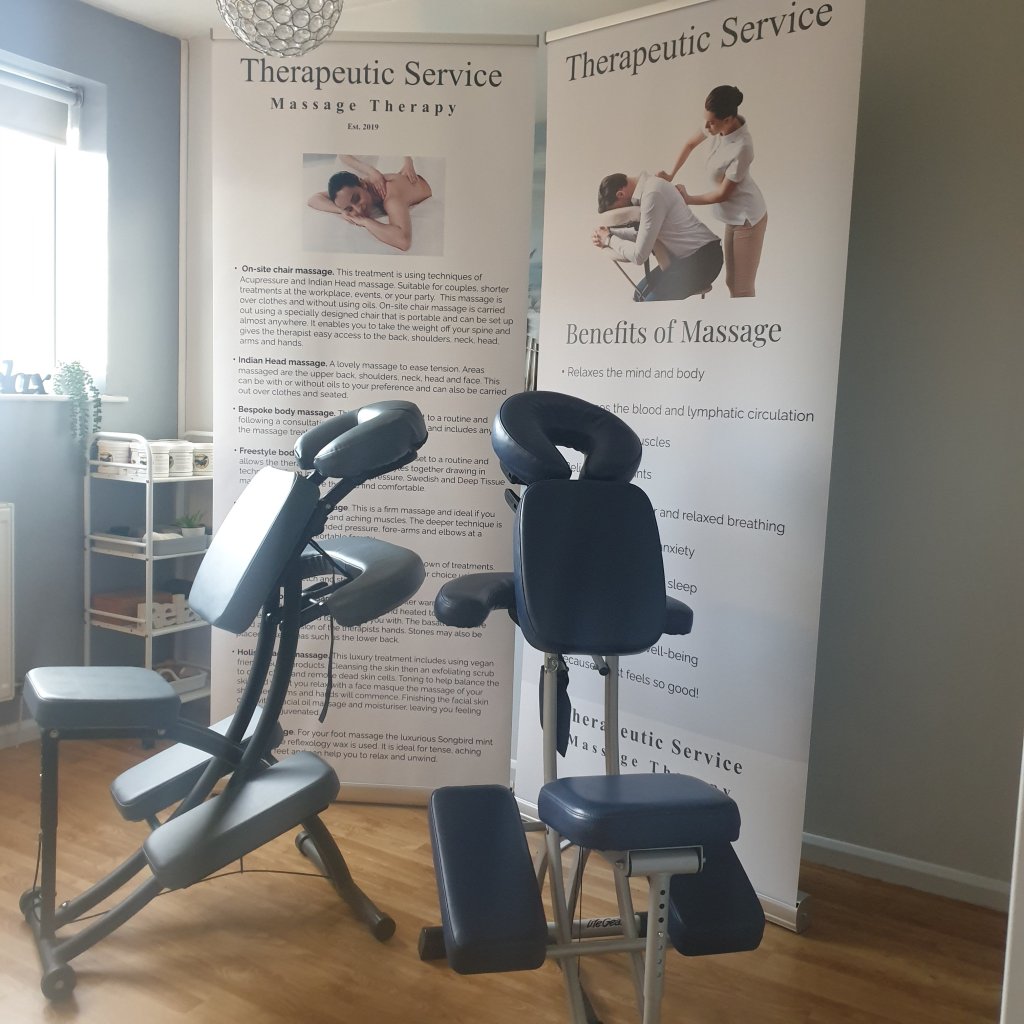 On-site chair massage. This treatment is using techniques of Acupressure and Indian Head massage. Suitable for couples, shorter treatments at the workplace, events or your party. This massage is over clothes and without using oils. On-site chair massage is carried out using a specially designed chair that is portable and can be set up almost anywhere. It enables you to take the weight off your spine and gives the therapists easy access to the back, shoulders, neck, head, arms and hands.